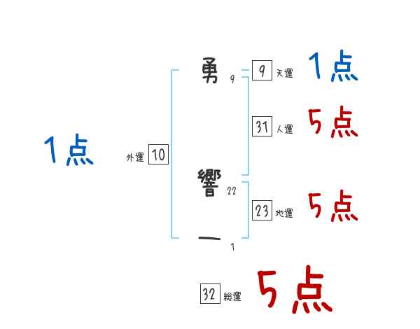 勇響一さんの画数の鑑定結果