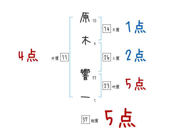 原木響一さんの画数の鑑定結果