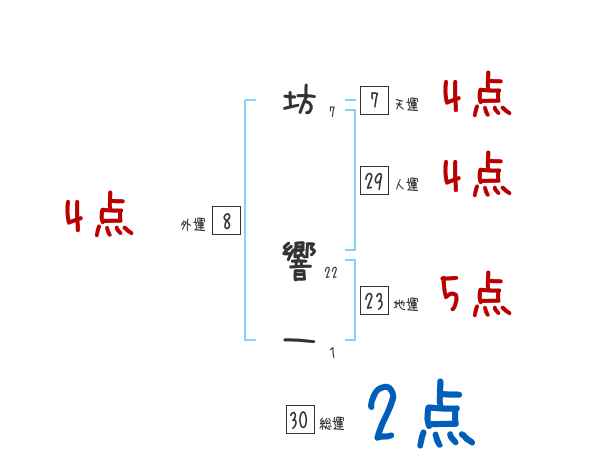 坊響一さんの画数の鑑定結果
