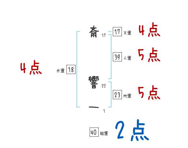 斎響一さんの画数の鑑定結果