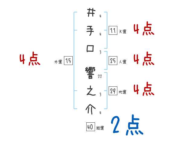 井手口響之介さんの画数の鑑定結果