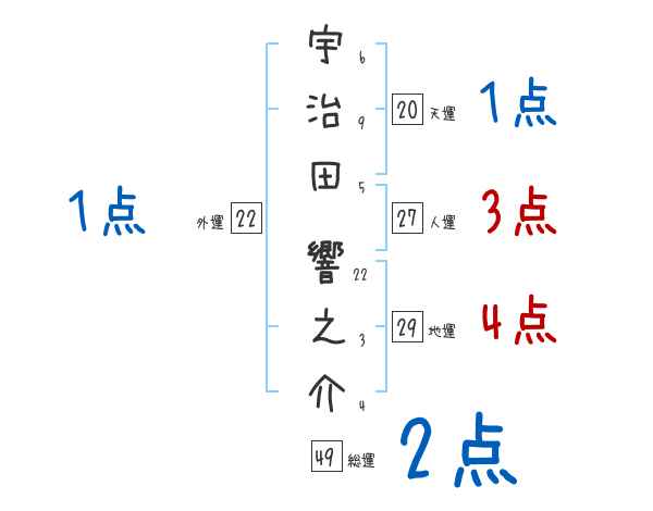 宇治田響之介さんの画数の鑑定結果