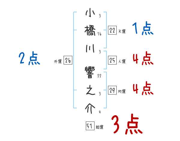 小橋川響之介さんの画数の鑑定結果