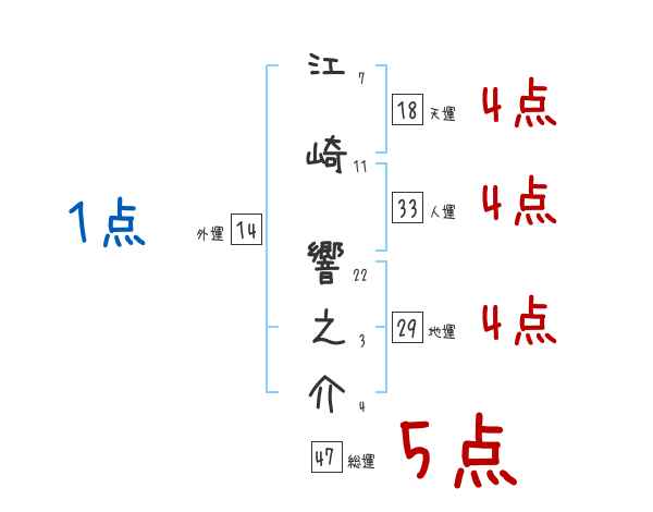 総運![]() | 江崎響之介さんの総運は47画の5つ星!実力が開花し発展する円満な人生。財に恵まれる。 あなたの人生を表す1番重要な運勢です。生涯を通じて影響する総合運となり、主に50歳以降の晩年期に影響を及ぼします。 |