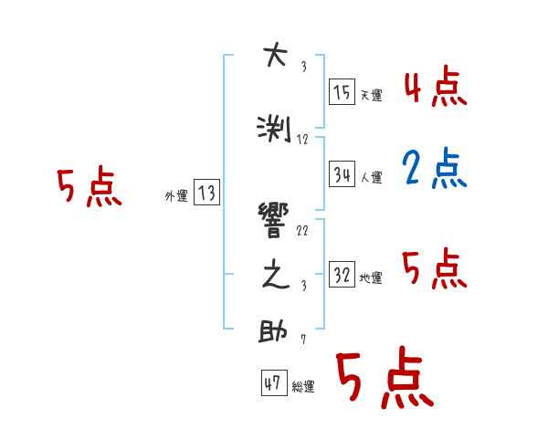 大渕響之助さんの画数の鑑定結果