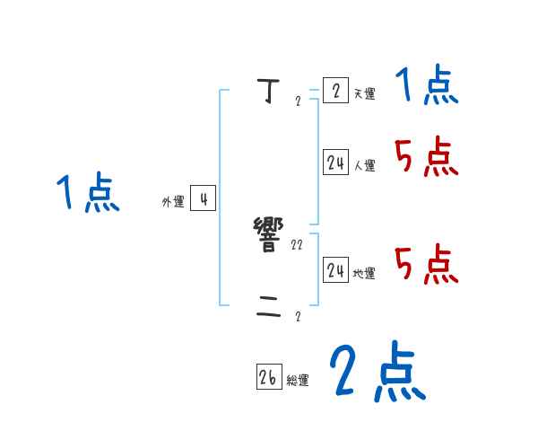 丁響二さんの画数の鑑定結果