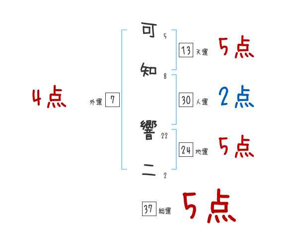 可知響二さんの画数の鑑定結果
