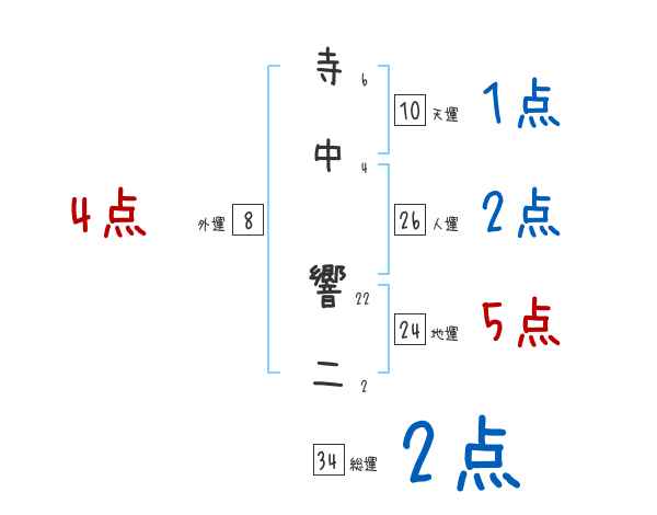 寺中響二さんの画数の鑑定結果