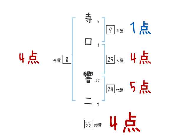 寺口響二さんの画数の鑑定結果