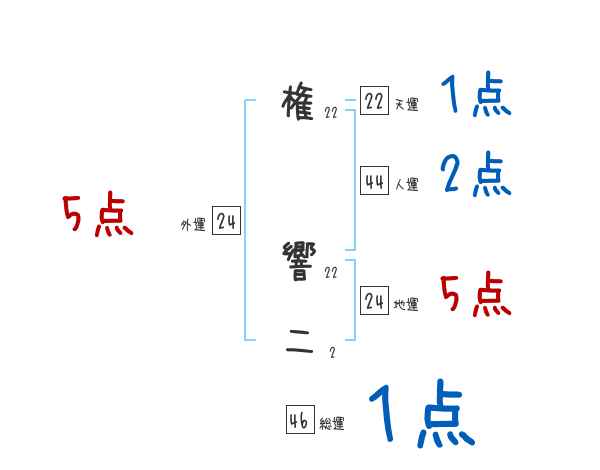 権響二さんの画数の鑑定結果