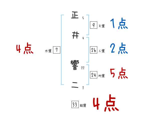 正井響二さんの画数の鑑定結果