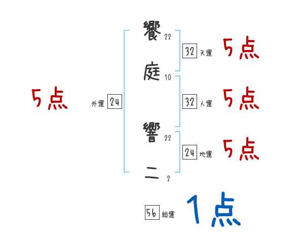 饗庭響二さんの画数の鑑定結果