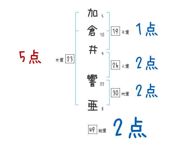 加倉井響亜さんの画数の鑑定結果