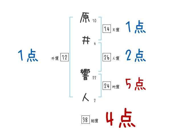 原井響人さんの画数の鑑定結果