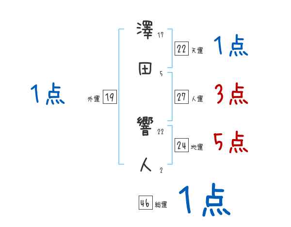 澤田響人さんの画数の鑑定結果