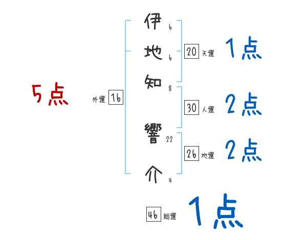 外運![]() | 伊地知響介さんの外運は16画の5つ星!人望が厚く大きく発展する。逆転成功が見える。 生活面を象徴する運勢です。外部から受ける影響力を表し、結婚運、家庭運や職場、環境への順応性を表します。 |