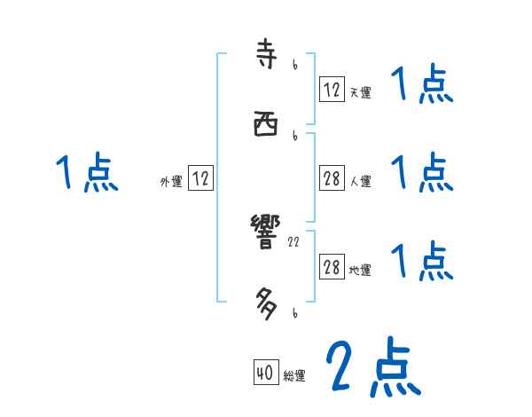 寺西響多さんの画数の鑑定結果