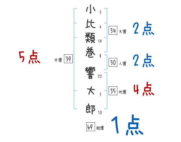 小比類巻響大郎さんの画数の鑑定結果