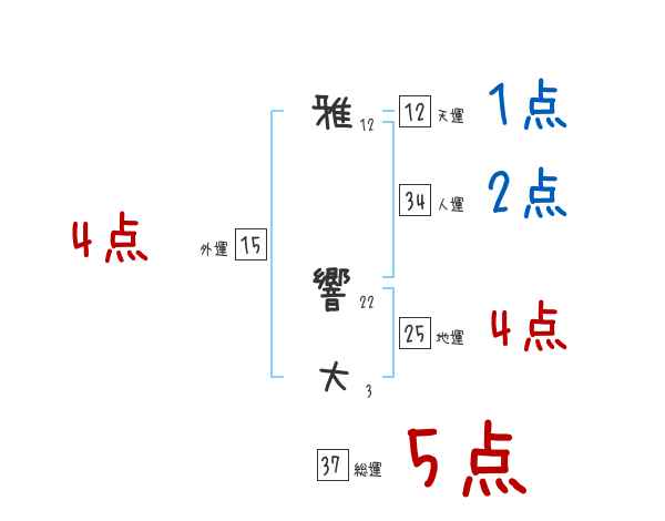 雅響大さんの画数の鑑定結果