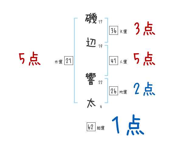 磯辺響太さんの画数の鑑定結果