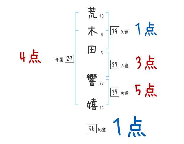 荒木田響嬉さんの画数の鑑定結果