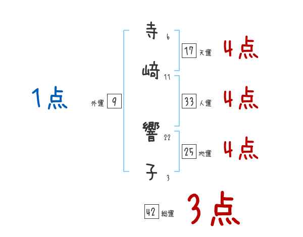 寺﨑響子さんの画数の鑑定結果