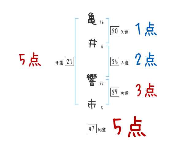 亀井響市さんの画数の鑑定結果
