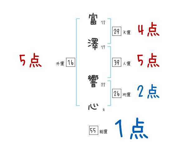 富澤響心さんの画数の鑑定結果