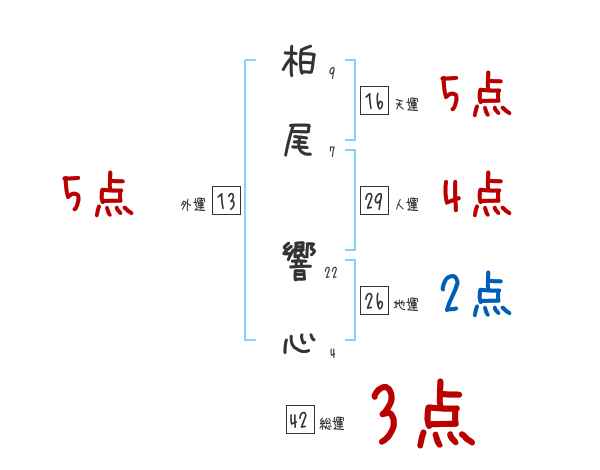 柏尾響心さんの画数の鑑定結果