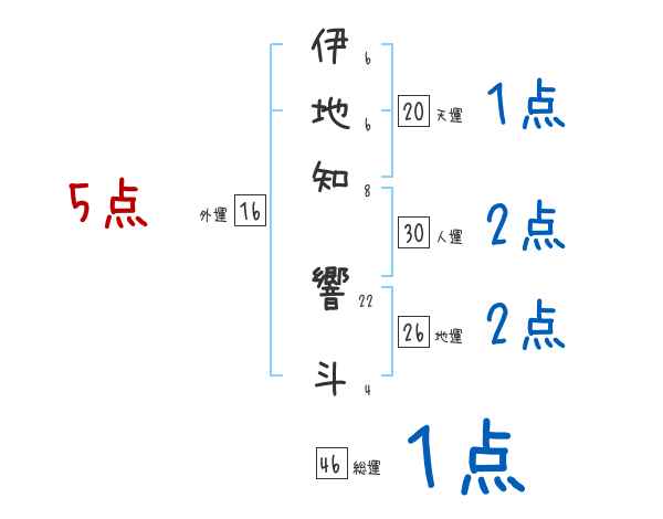 伊地知響斗さんの画数の鑑定結果