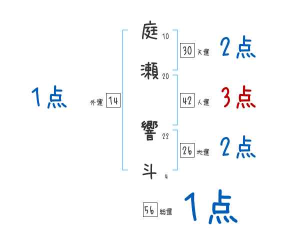 庭瀬響斗さんの画数の鑑定結果