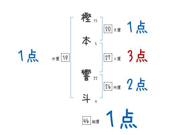 樫本響斗さんの画数の鑑定結果