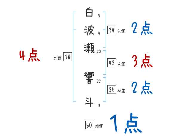 総運![]() | 白波瀬響斗さんの総運は60画の1つ星!悲観的で迷いやすい。波乱が多く損をしないように。 あなたの人生を表す1番重要な運勢です。生涯を通じて影響する総合運となり、主に50歳以降の晩年期に影響を及ぼします。 |