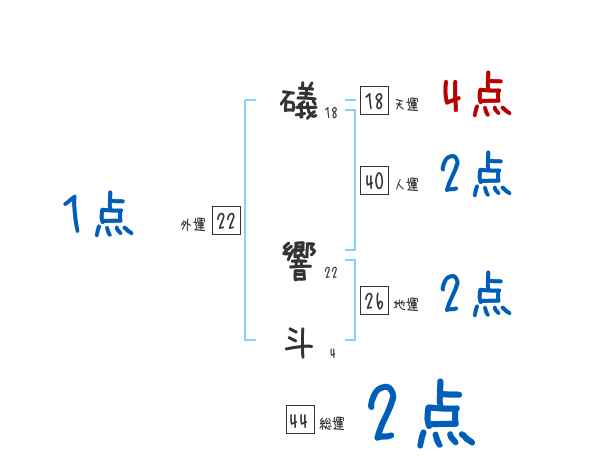 礒響斗さんの画数の鑑定結果