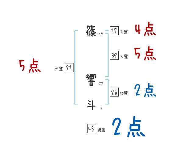 篠響斗さんの画数の鑑定結果