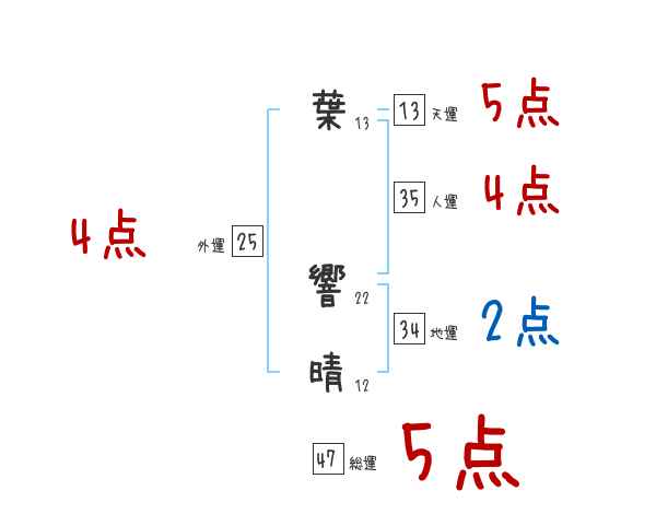 葉響晴さんの画数の鑑定結果