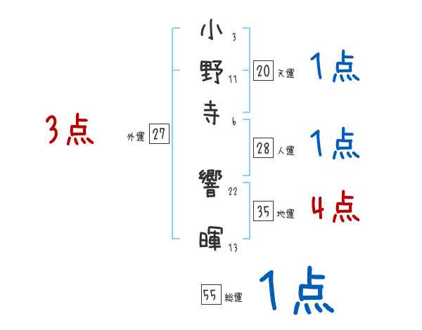 小野寺響暉さんの画数の鑑定結果