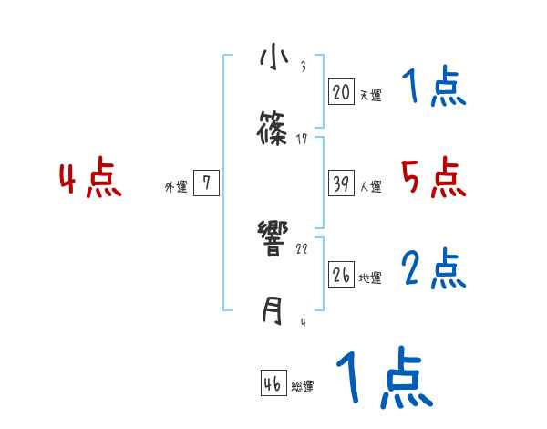 小篠響月さんの画数の鑑定結果