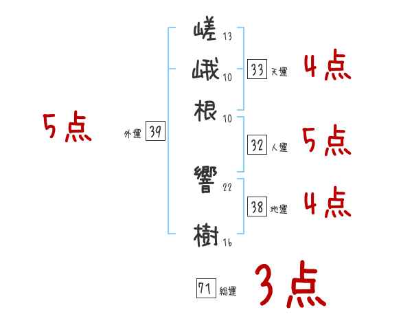 嵯峨根響樹さんの画数の鑑定結果