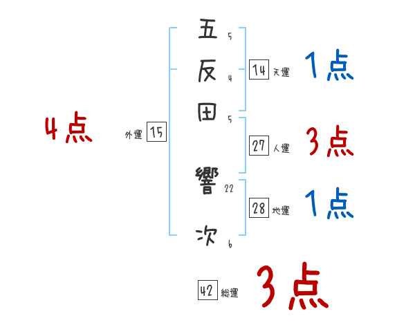 五反田響次さんの画数の鑑定結果