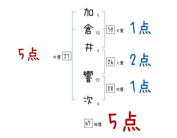 加倉井響次さんの画数の鑑定結果