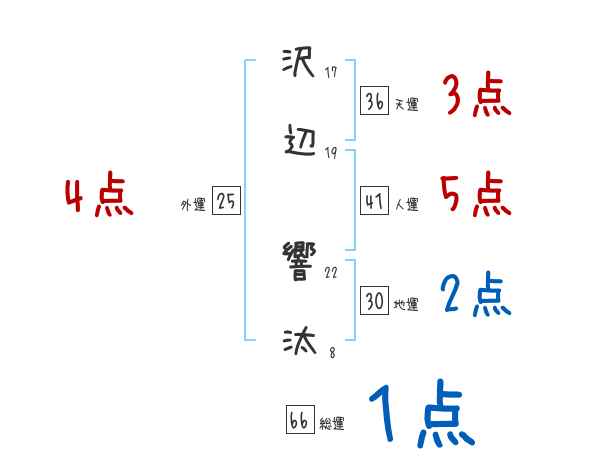 沢辺響汰さんの画数の鑑定結果