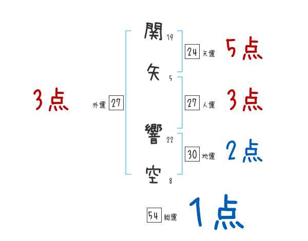 関矢響空さんの画数の鑑定結果