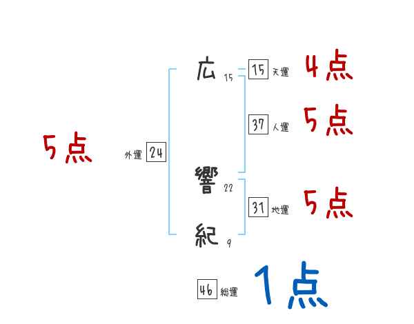 広響紀さんの画数の鑑定結果