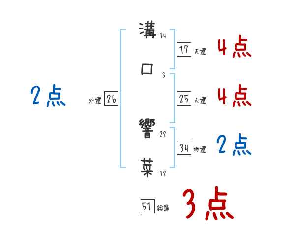 溝口響菜さんの画数の鑑定結果