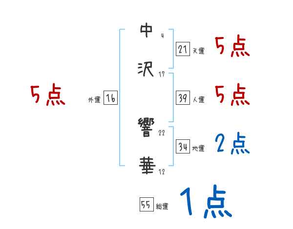中沢響華さんの画数の鑑定結果