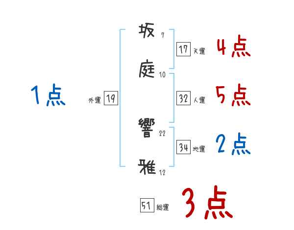 坂庭響雅さんの画数の鑑定結果