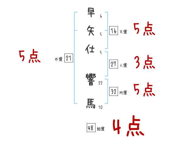 早矢仕響馬さんの画数の鑑定結果