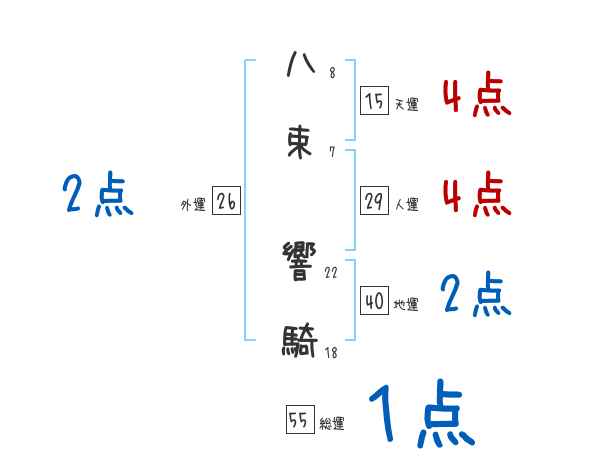 八束響騎さんの画数の鑑定結果