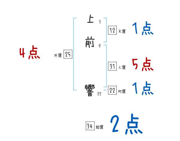 上前響さんの画数の鑑定結果
